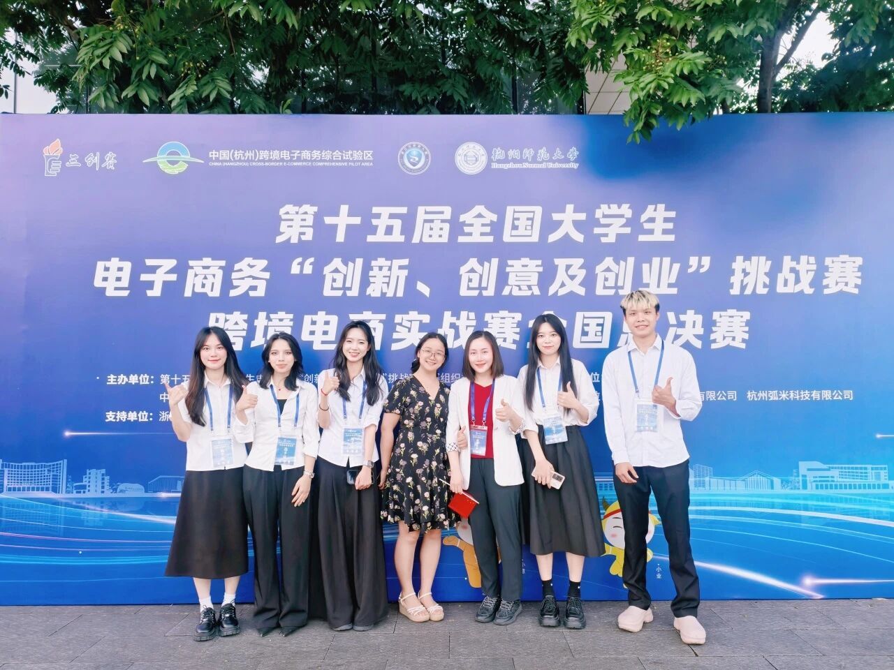 在本次“三创赛”跨境电商实战赛道中,由陈潇、蔡捷微老师及杨浩然董事长、苏家捷总经理指导,吴怡、杨浩基、罗振懿、张芝琳和黄奕津组成的“跨境潮头鱼队”队凭借卓越的创新理念、出色的创意策划和扎实的创业实践,脱颖而出,勇夺“三创赛”国赛特等奖,四名老师被评为“最佳指导老师”。由梁凌、陈潇老师及杨浩然董事长、苏家捷总经理指导,林依灵、施小霖、曾伟业、廖素漫和钟嘉怡组成的“环球Oriana”队凭借前沿的创新成果、精妙的创意设计和高效的创业执行,表现优异,斩获“三创赛”国赛二等奖。