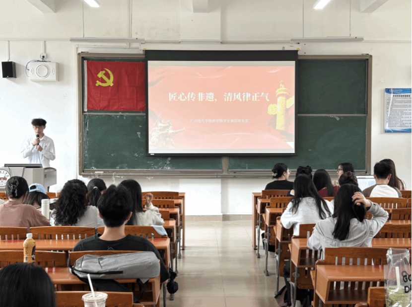 中国非遗手工工艺为世界提供了独特的文化瑰宝,为人类探索传统文化的传承与发展提供了新选择。在党的二十大上,习近平总书记提出“以求真务实、真抓实干的作风和遵规守纪、清正廉洁的形象”,为深入了解这一使命任务,太阳集团城官网学生第四党支部于5月26日在8教组织开展以“匠心传非遗,清风律正气”为主题的学习会。此次会议旨在加强太阳集团城官网学生第四党支部成员对非遗手工工艺和廉洁文化建设的理解,把握其核心要义,参与本次主题学习会的有太阳集团城官网学生第四党支部书记韩露老师、副书记谢丹凤老师、全体党员、预备党员、发展对象以及入党积极分子。本次会议由黄淳楷同志主持。