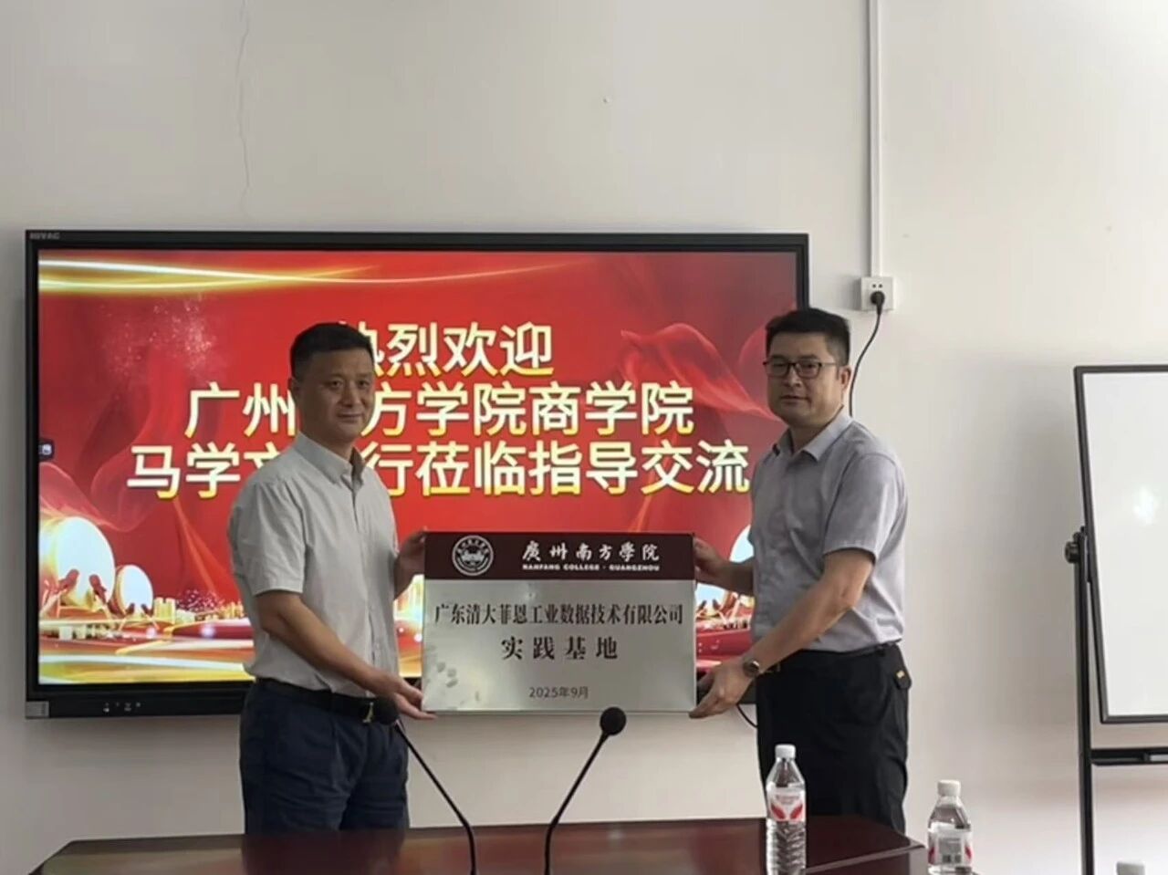 会议尾声,我校马学文主任与肖金山总经理就此次校企合作——清大恩菲实践基地进行挂牌交接仪式。此次参访是我校与清大恩菲开展校企合作的一次深度互动,标志着我校与清大恩菲开始相互合作、产教融合进入快车道。未来,我校将携手清大恩菲共同为粤港澳大湾区及全国输出“懂技术、懂数据、懂经济、懂价值”的复合型人才。
